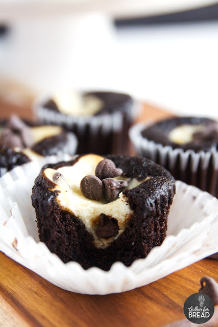 Deep dark chocolate cupcakes filled with a cream cheese chocolate chip filling. These cakes are moist, decadent and delicious!
